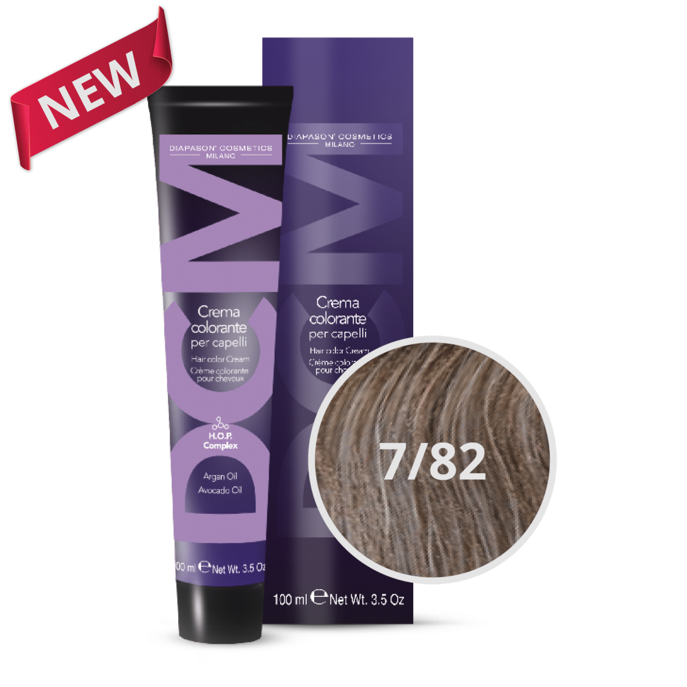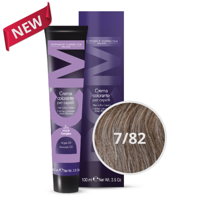 DCM 7/82 ξανθό σταχτί βιολετί (medium violet ash blonde). Επαγγελματική βαφή μαλλιών από την ιταλική Diapason Milano Cosmetics με πολύ χαμηλή περιεκτικότητα σε αμμωνία. Κάθε απόχρωση από τις βαφές της DCM εγγυάται 100% κάλυψη των γκρίζων μαλλιών χωρίς να είναι απαραίτητη η ανάμειξη πρόσθετων βάσεων. Χαρίζουν αποτελέσματα με υπέροχη λάμψη και χρώματα που αντικατοπτρίζουν αυτό που θα δείτε και στο χρωματολόγιο. Είναι πολύ εύκολες στην ανάμειξη τους, με ευχάριστη μυρωδιά και περιέχουν H.O.P Complex- ενυδατικό λάδι και σύνθεση πρωτεϊνών ( Λάδι Αβοκάντο, Argan oil, πρωτεΐνη βρώμης) για το μέγιστο καλύτερο αποτέλεσμα και την προστασία των μαλλιών σας.