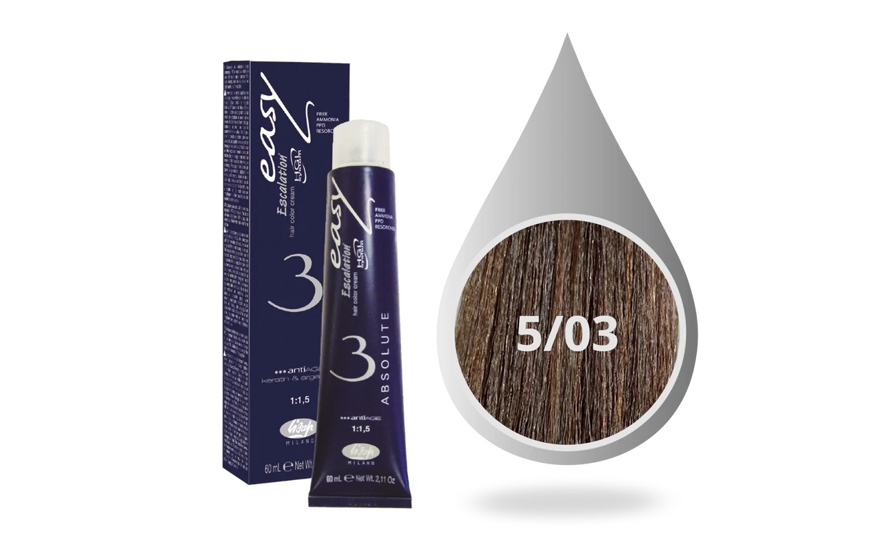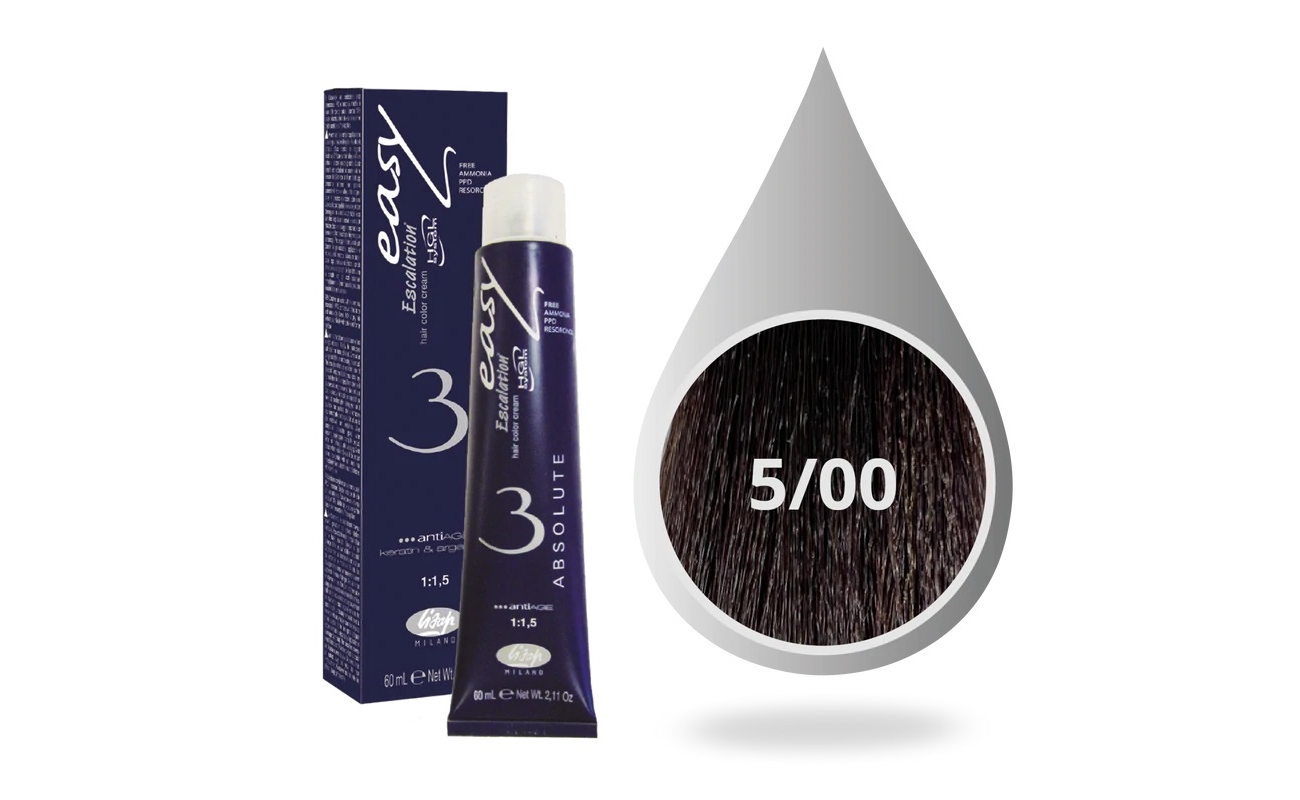Η αποκλιστική καινοτόμα επαγγελματική βαφή είναι εξαιρετικά απαλή,χωρίς αμμωνία,PPD και resorcina με γλυκό άρωμα και εξαιρετική απαλότητα.Η Escalation Easy Absolute 3 αποτελεί μια μόνιμη βαφή, με υψηλή πρακτικότητα.Είναι μια βαφή με ελαφρύ άρωμα και ταχεία παρασκευή,της οποίας,η υφή εξασφαλίζει ευκολία εφαρμογής και υψηλή καλλυντική απόδοση, επιπλέον 100% κάλυψη των λευκών μαλλιών,ακόμη και των πιο ανθεκτικών στο χρώμα.