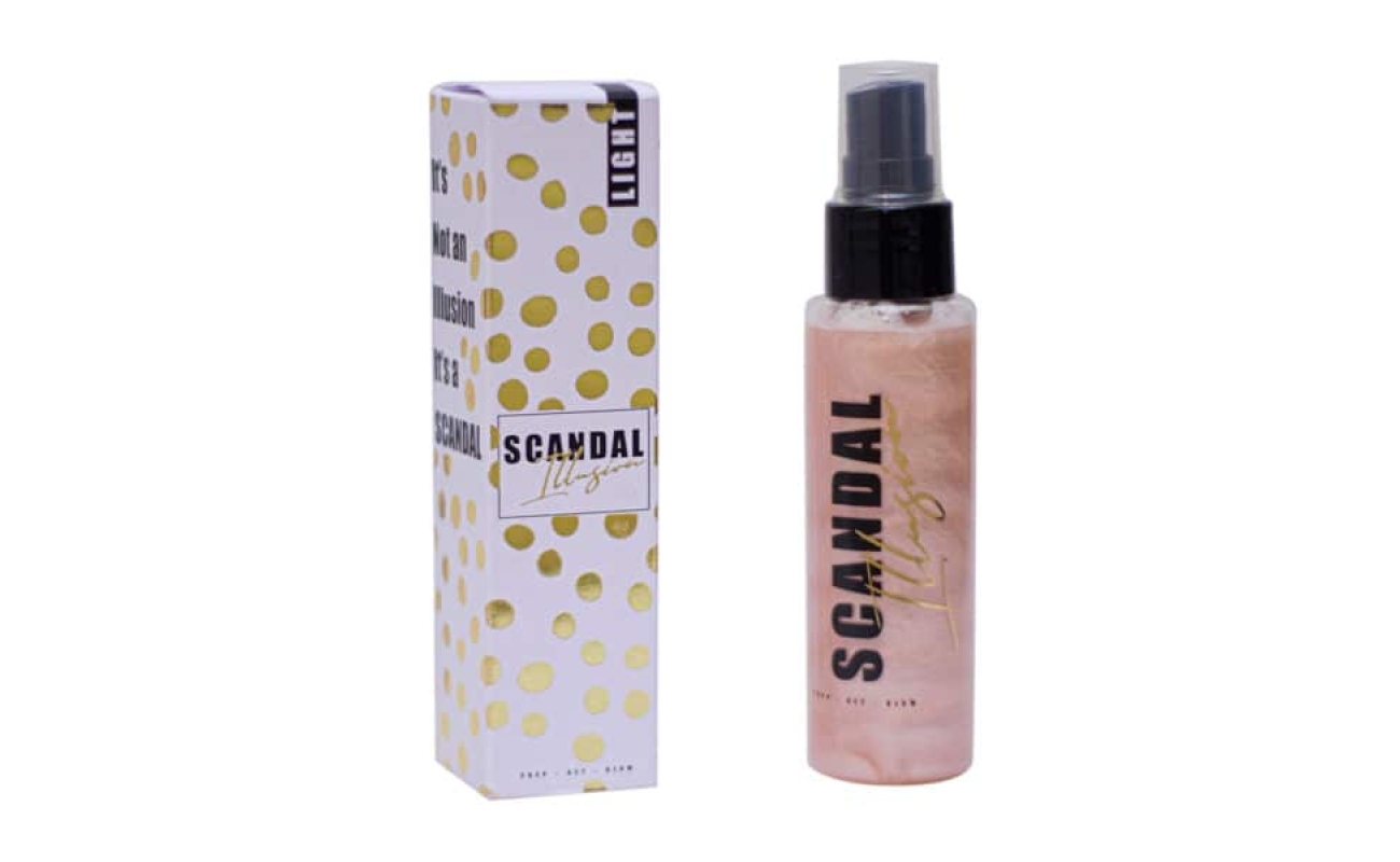 Scandal illusion Light Σπρέι προετοιμασίας και σεταρiσματος λάμψης. Διαθέτει τέλεια σαμπανιζέ λάμψη, με σκοπό να προσφέρει στον τόνο του δέρματος λαμπερό και γυαλιστερό αποτέλεσμα!