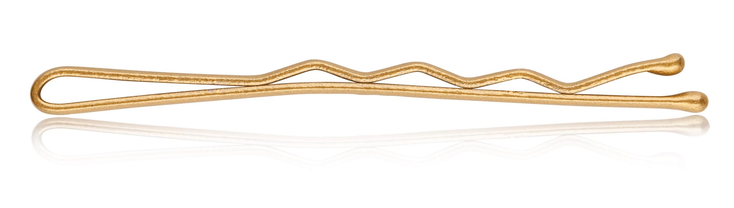 Μικρό και πρακτικό τσιμπιδάκι μαλλιών σε κυματιστή μορφή και έντονο ξανθό χρώμα, ιδανικό για σταθεροποίηση λεπτομερειών ή δημιουργία όγκου σε χτενίσματα.