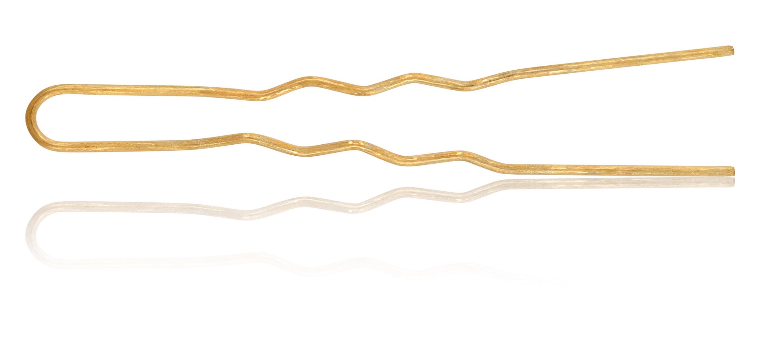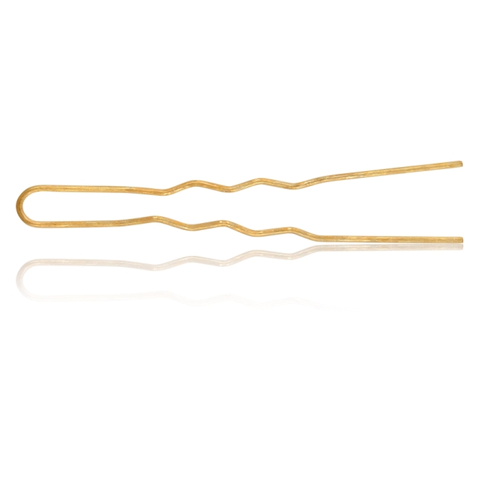 Κομψό και πρακτικό ξανθό τσιμπιδάκι μαλλιών με κυματιστή μορφή και μικρό άνοιγμα, ιδανικό για να συγκρατεί εύκολα μικρές τούφες ή να δημιουργεί λεπτομέρειες στα χτενίσματα.